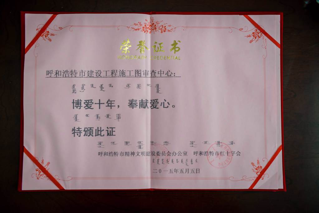 “博愛十年,奉獻(xiàn)愛心”榮譽(yù)證書